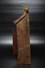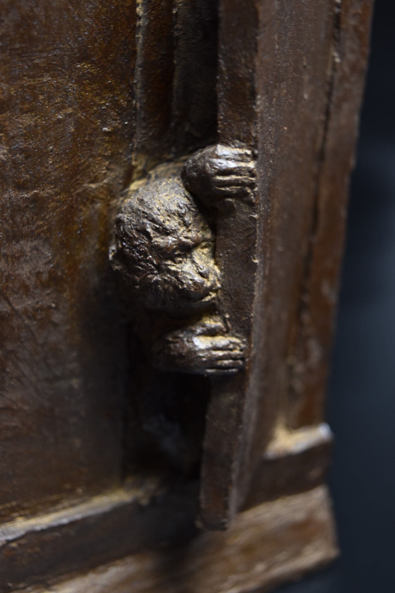 十二支が日常の中に隠れていて、私たちを見守っていることを表した作品です。神棚の「神」の字に、十二支の「申」が隠れていることから想を得ています。家内安全、商売繁盛など家庭や会社を支えている神棚に、申を祀りました。